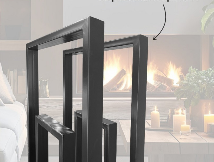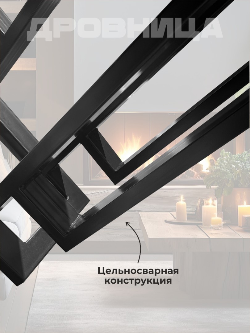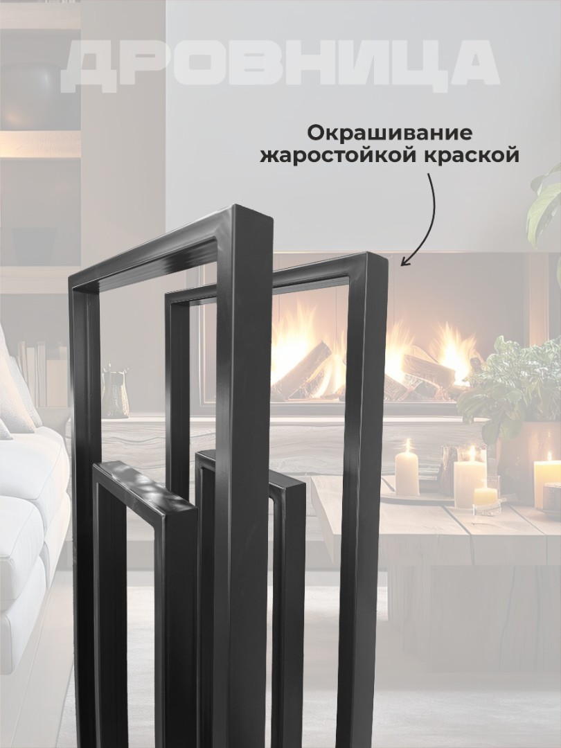 Окрашена жаростойкой краской. Строгость линий и минимализм форм делают дровницу элементом декора, способным идеально вписаться в различные стили ландшафтного дизайна. В то же время, ее конструкция рассчитана на большие нагрузки –  может выдержать значительный вес дров.